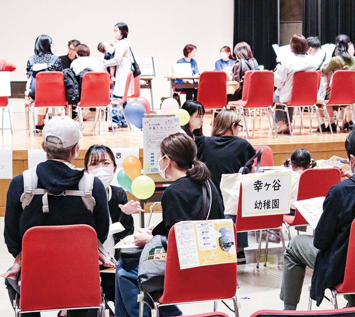 毎年10月中旬に各園の願書配布が始まることから、その前に時間的余裕を持ちながら保護者に幼稚園選びをしてほしいとの思いで行っているもの。当日は、区内幼稚園協会加盟園の幼稚園・認定こども園の11園が参加した。保護者らは預かり保育や送迎バスなど、入園後を見越した質問を投げかけ、園長や職員の説明に真剣な表情で聞き入っていた。参加した保護者からは、「一度に複数の園の話を聞いて比較できるのでありがたい」「ママ友同士でも情報交換するが、先生たちの人柄もわかるのでこうした機会は貴重」といった声が上がった。また、臨床心理士による育児の悩み相談も行われた。