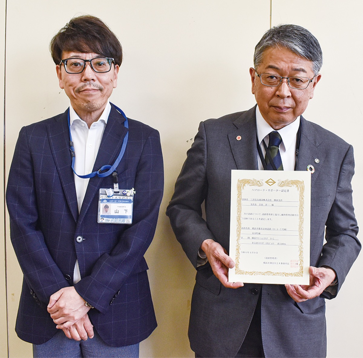 栄町の三井住友建設株式会社横浜支店が、横浜市と協働で身近な道路の清掃や美化活動を行う制度「ハマロード・サポーター」の活動団体に認定された。