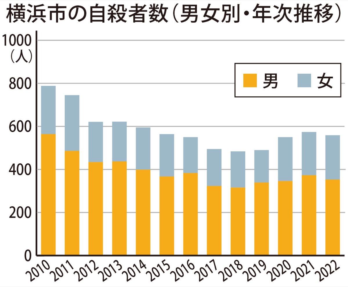 横浜市は、2016年の「自殺対策基本法」の改正に伴い、19年度に第1期の自殺対策計画を策定。「誰もが自殺に追い込まれない社会の実現」を目指し、ゲートキーパー(GK)の養成や相談支援体制の強化などを行ってきた。