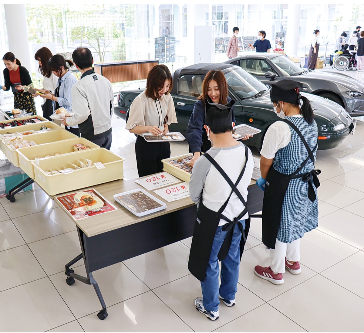 マツダ株式会社の研究開発拠点マツダR&Dセンター横浜=守屋町=は5月21日、ショールームで「福祉事業所出張販売会」を開催した。区内の7事業所が参加。同社や近隣企業の社員らで盛況となった。担当者は、「今後はもっと地域に発信して、事業所の方々の活動を応援していきたい」と話す。
