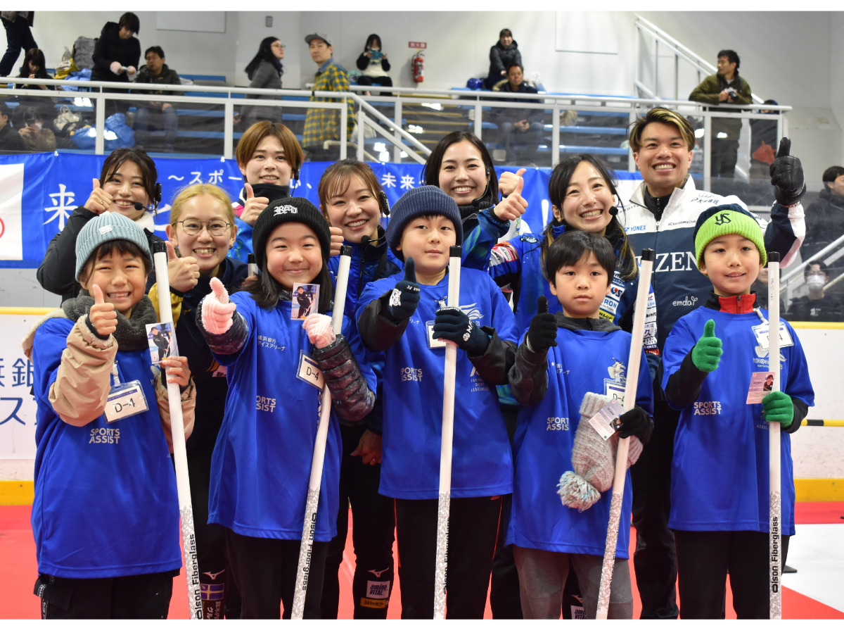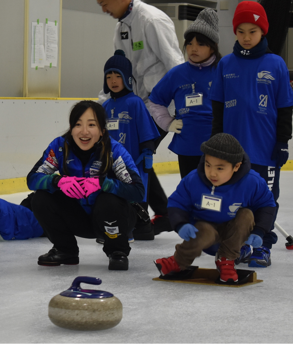 ロコ・ソラーレの藤澤五月選手・吉田知那美選手らカーリングトップ選手が、横浜銀行アイスアリーナで小学生に指導