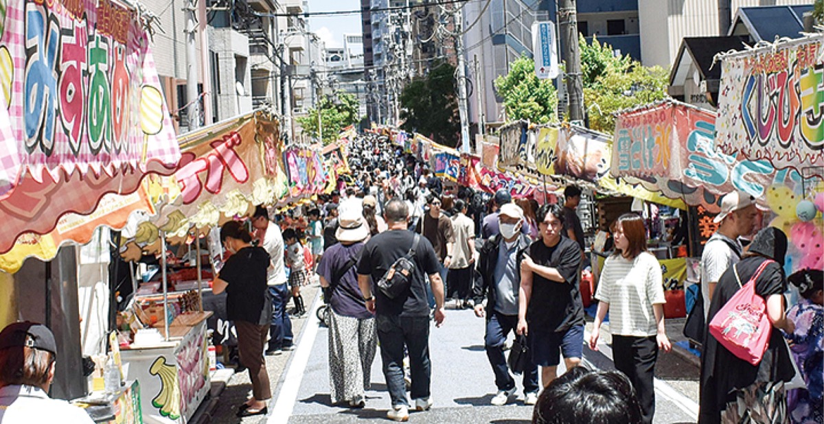 洲崎大神の例大祭が6月7日から9日まで開催された。9日には周辺の各町内でも神輿や山車の巡行があり、各町内でにぎわいを見せた。また、会期中は神社前の道路に屋台が並び、子ども連れなど多くの人が連日祭りの雰囲気を楽しんでいた。