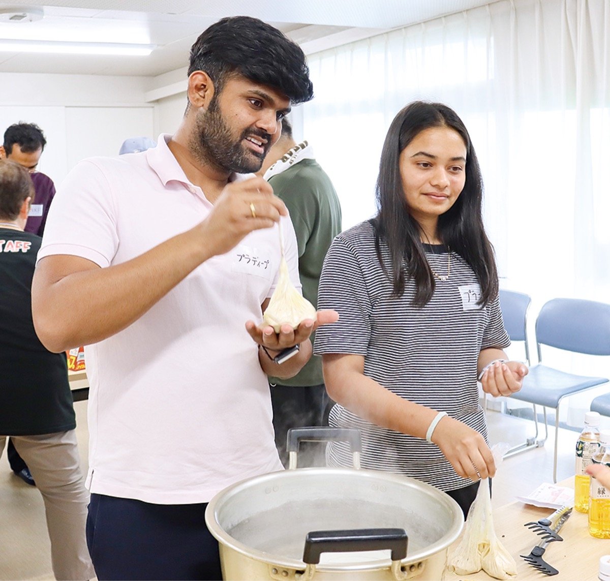 パンの完成を待つ間には、年始の能登半島地震の映像の紹介や災害時の正しい行動に関するクイズなどで、防災に関する知識を学んだ。インド人のプラディープさんは、「日本は地震が多いので、防災について学ぼうと思って参加した。ともに団地で暮らす人と交流できるのもよかった」と笑顔で振り返った。