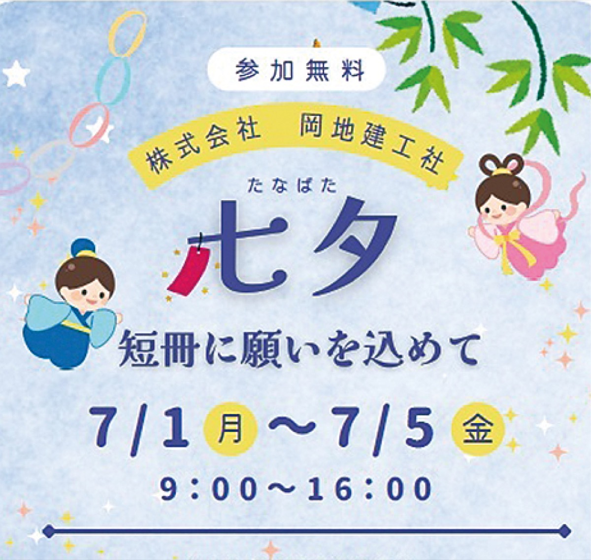 建築会社の(株)岡地建工社=松見町1の7の3=は7月1日(月)〜5日(金)、七夕企画を開催する。