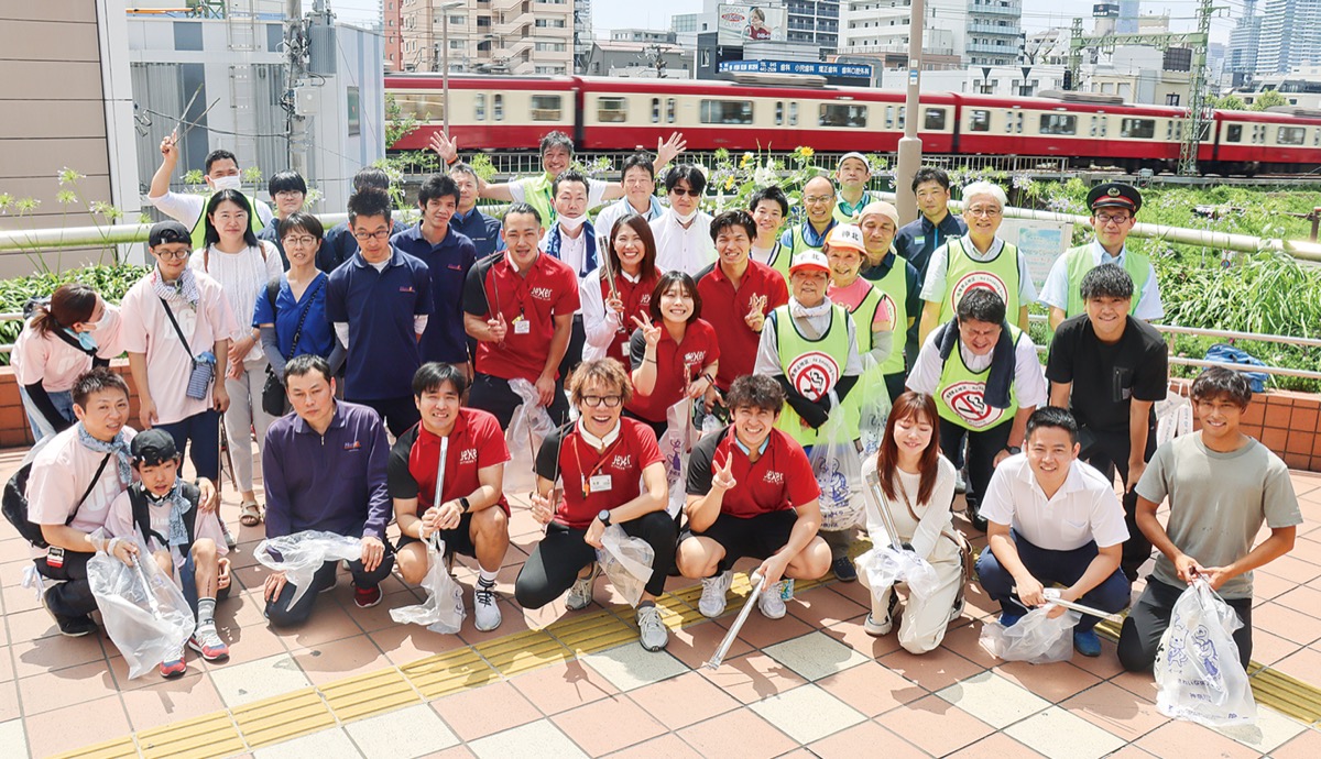 かなっくウォークの愛称で知られるJR・京急東神奈川駅の連絡橋周辺で8月2日、地域住民や行政、周辺企業等による清掃活動「かなっくリーン」が開催された。