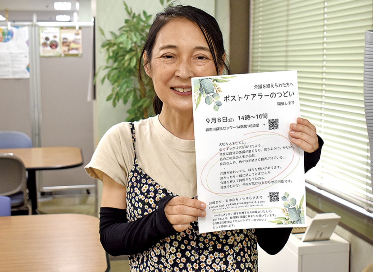 介護を終えた人だけでなく、身近な人を亡くしたり、現在介護中で、これからが不安な人も参加可能。申し込み・問い合わせはやすらぎ【メール】yasuragi.yokohama@gmail.comへ。同団体のフェイスブックページ(https://www.facebook.com/yasuragikazokukai)でも情報を発信している。