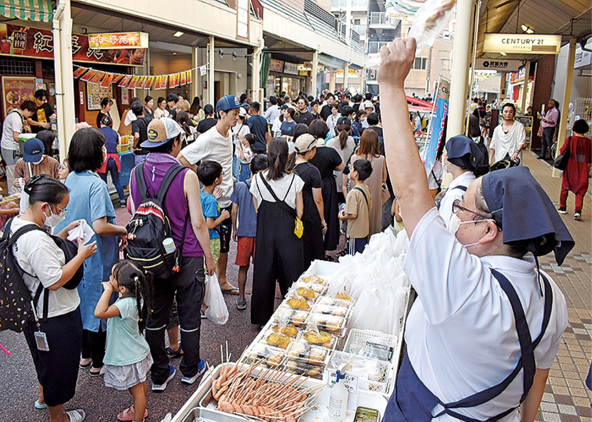 全長380mに及ぶ商店街アーケードの下に飲食やゲームなど約50店の夜店が連なる催し。今年は台風10号の影響で当初予定から1週間の延期となったものの、両日とも多くの老若男女でにぎわいを見せた。