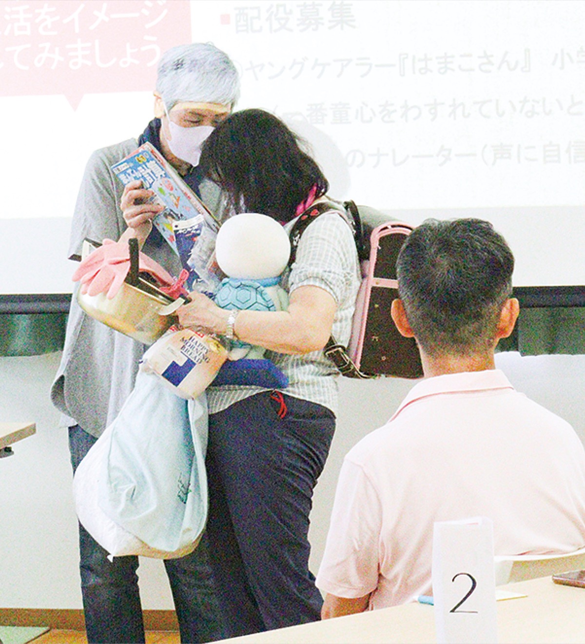 ヤングケアラーとは、家族にケアが必要な人がいる場合に、大人が担うような責任を引き受け、家事や家族の世話、介護、感情面のサポートなどを行っている18歳未満のことを示す。前半の講座では、ヤングケアラーが抱える不安や負担について解説。後半には、家事やきょうだいの世話などヤングケアラーが背負う役割を、実際のものを使って可視化した劇を通して学んだ。最後は、約20人の参加者は5グループに分かれて、学んだことや感じたこと、これから自分たちが実践できる支援などについて意見を交わした。