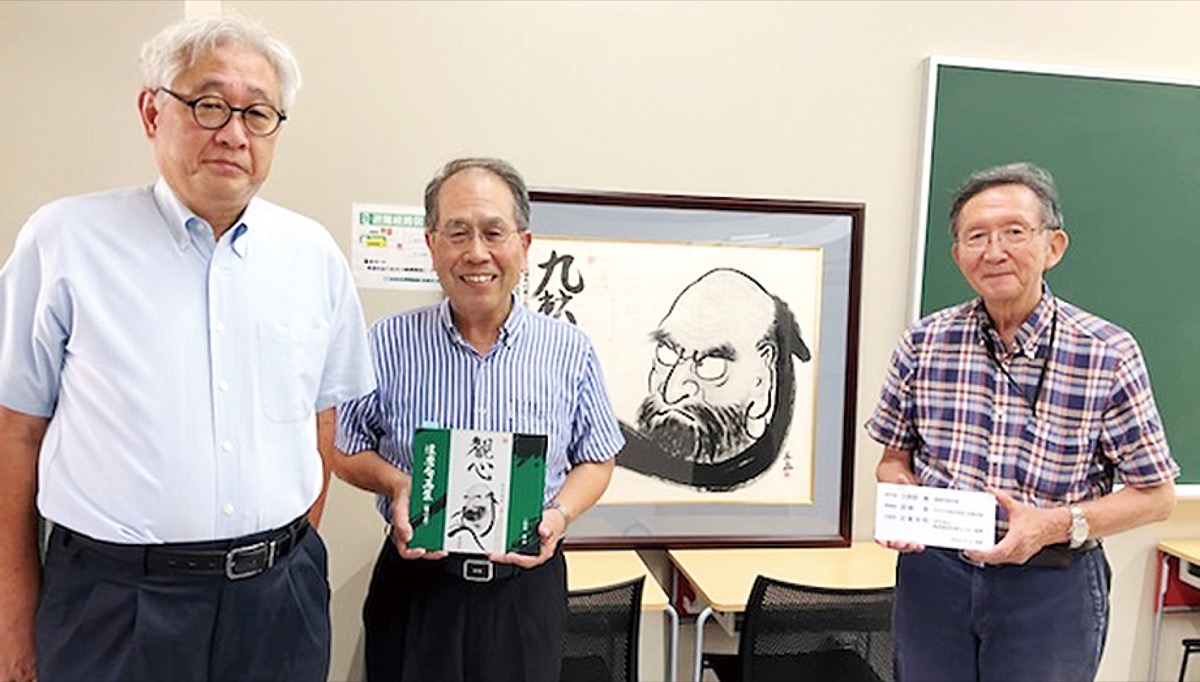 田嶋氏はどんな苦境でもくじけない精神を広める「報徳九転十起人生塾」を主宰していたこともあり、九転十起を人生訓とした浅野総一郎ゆかりの施設として今回の寄贈が実現した。小田原出身の達磨句画作家・三廻部蕃(みくるべしげる)さんが制作したもので、同校の同窓会室に展示されている。