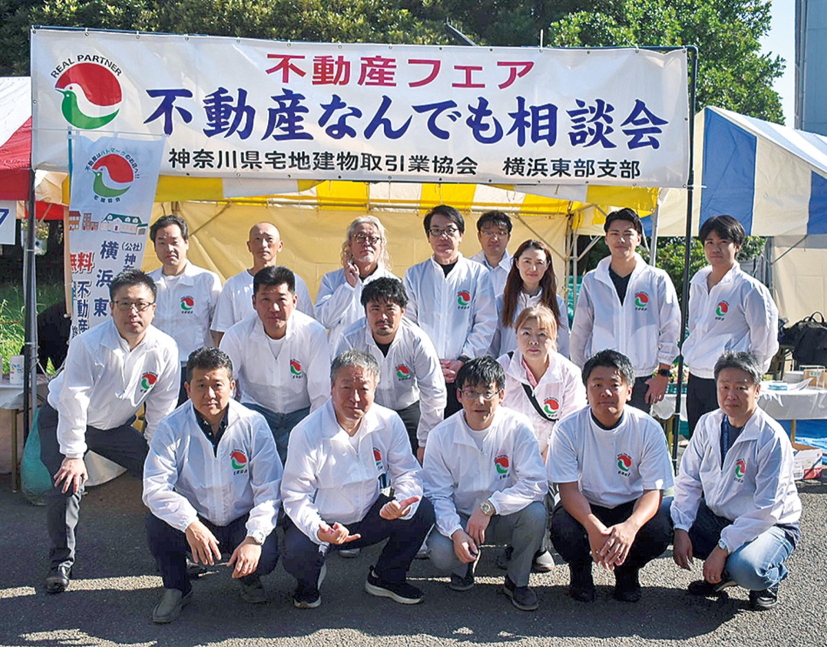 「不動産なんでも無料相談室」でおなじみの神奈川県宅地建物取引業協会横浜東部支部(桐ヶ谷修幸支部長)が10月13日、反町公園で行われた区民まつりに出店し、「不動産フェア」を開催した。