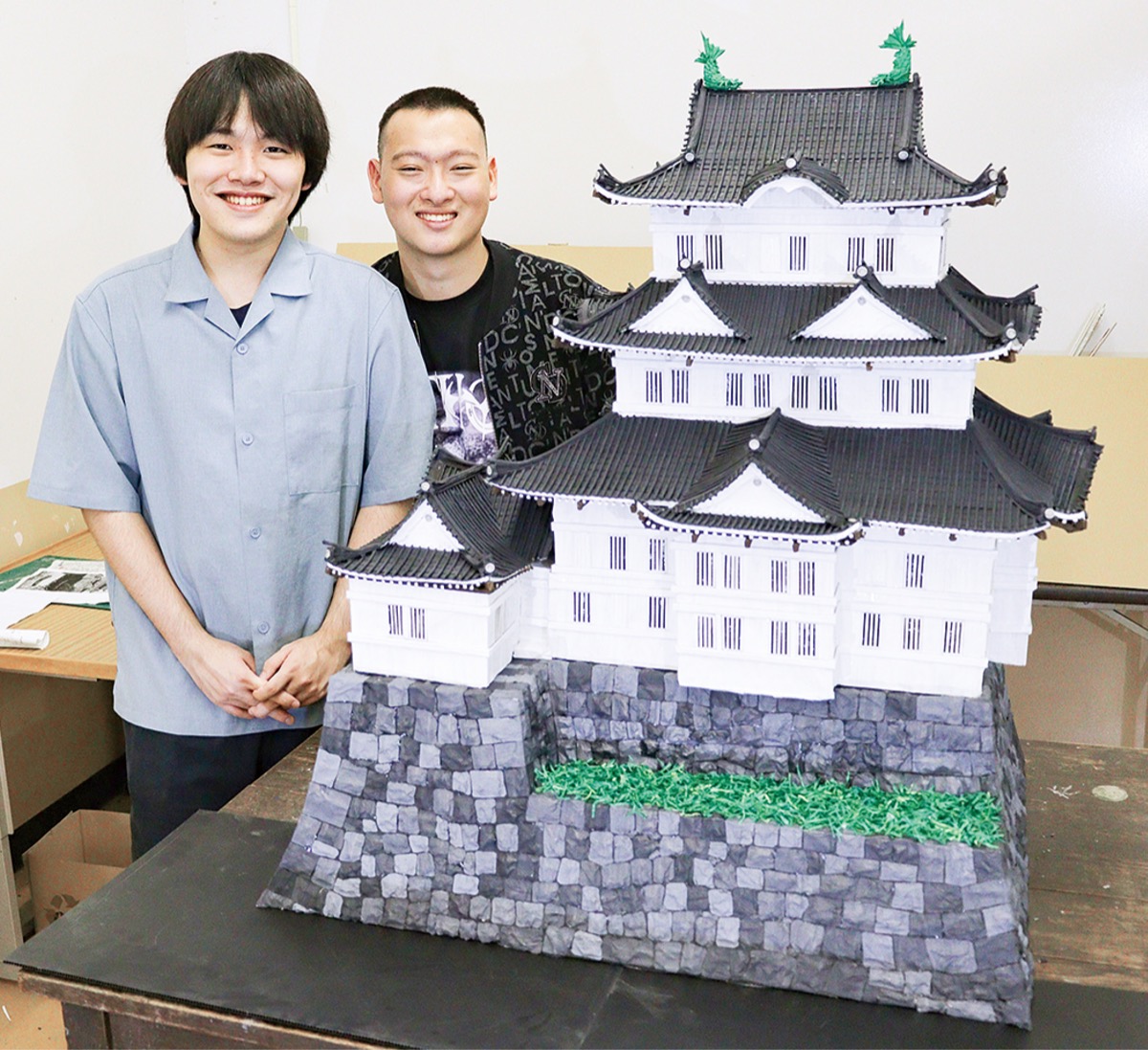 神奈川工業高校=平川町=定時制建設科の4年生2人が、新聞紙を使った「小田原城」の模型を製作した。10月27日の文化祭では一般公開され、来場者を楽しませた。