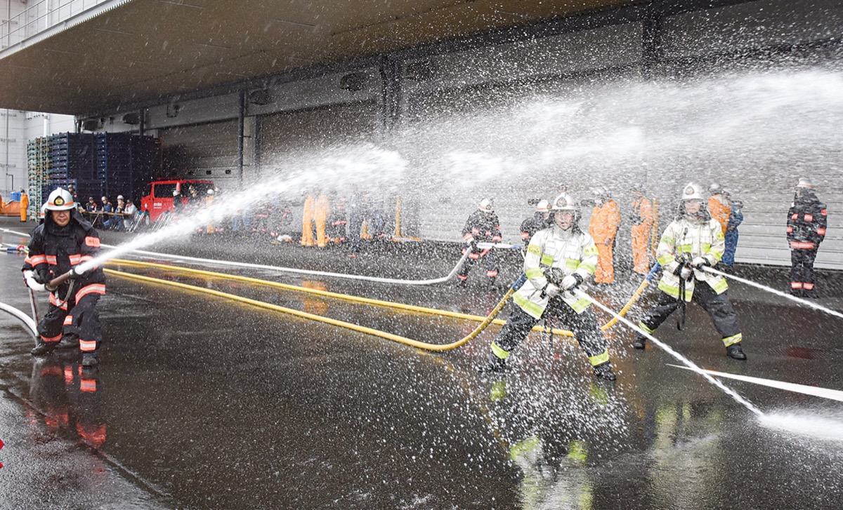 神奈川消防署と神奈川消防団による署・団連携震災対応訓練が11月2日、恵比須町にある澁澤倉庫(株)横浜支店の敷地内で行われた。
