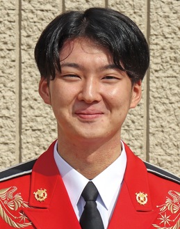 ○…1982年の発足以来、演奏・演技を行う初の男性隊員に。4月に入隊し、10月の戸塚区でのイベントでデビューを飾った。「本番は少しミスもあったが、今の自分の精一杯は出せて楽しめた」と笑顔で振り返る。