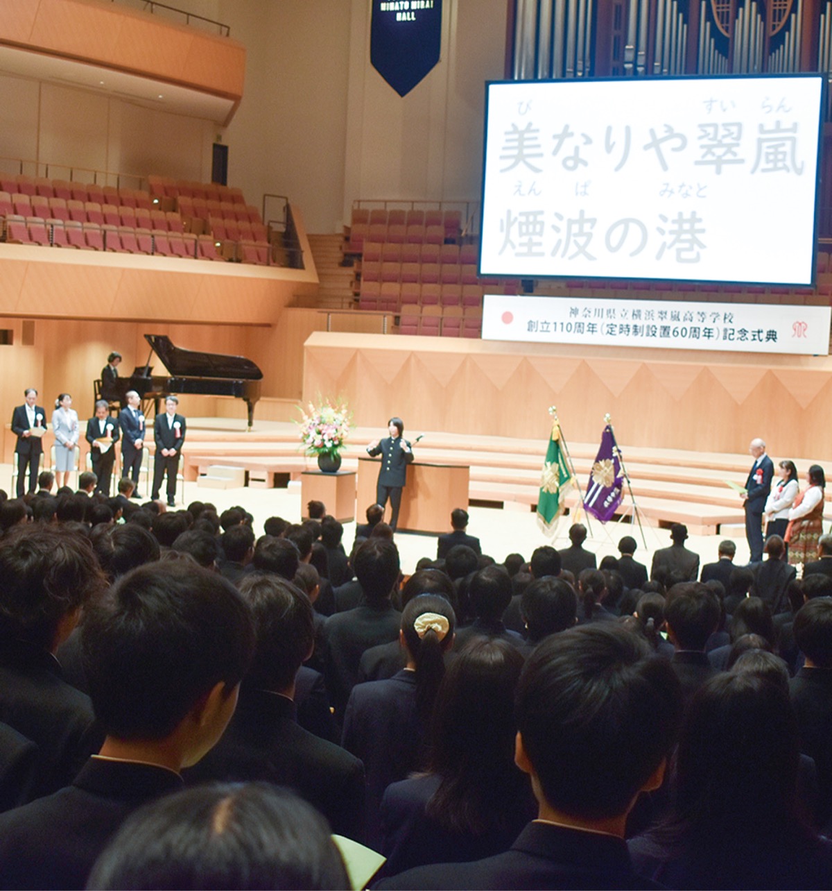 今年度創立110周年・定時制設置60周年を迎えた県立横浜翠嵐高校=三ツ沢南町=の記念式典が11月8日、横浜みなとみらいホールで開かれた。