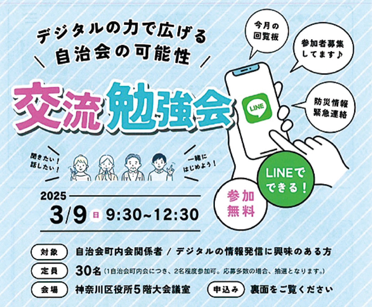 神奈川区役所区政推進課は3月9日(日)、デジタルを活用した情報発信の取り組みを紹介する「交流勉強会」を開催する。