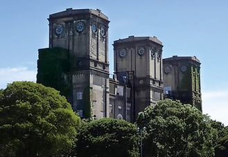 旧根岸競馬場は1866年に開設。観覧施設である一等馬見所は1929年、関東大震災で崩壊した馬見所に代わり建設された。鉄骨鉄筋コンクリート造りの7階建てで、延床面積は約5千平方メートル。アメリカ人建築家J・H・モーガンが設計し、高さ約30メートルの3つ並んだ塔が特徴的だ。並んでいた二等馬見所は老朽化で1988年に解体されたが、同施設は現存する国内最古の競馬場建築となっている。2009年、経済産業省から近代化産業遺産の認定を受けた。