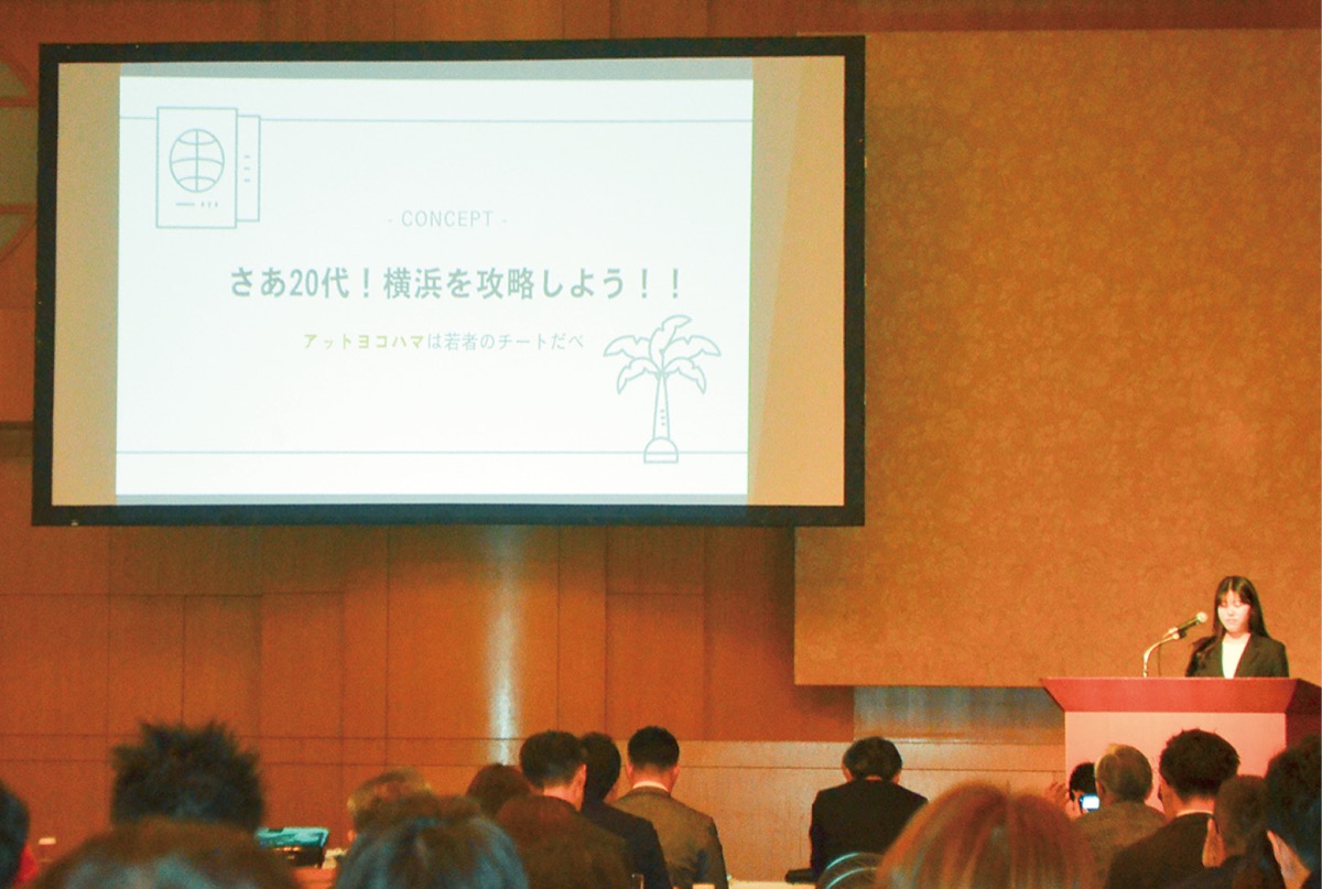 神奈川県や横浜市の観光情報を発信する(株)アットヨコハマ=神奈川区栄町=は、2月21日、横浜ベイホテル東急で「産学連携ミーティング最終発表会」を開催した。同社は今年度、岩崎学園横浜デジタルアーツ専門学校、横浜国立大学、横浜市立大学、神奈川大学の学生と横浜の活性化や課題解決を目的に取組を進めてきた。当日はその取組や成果が発表された。