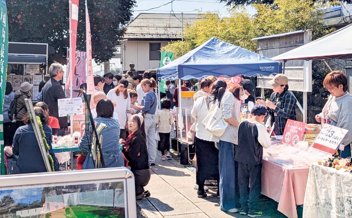 松見町西寺尾八幡神社の境内を会場にしたマルシェの開催は5回目。春の陽気に包まれた当日は、快晴の青空の下たくさんの地域住民が来場した。飲食やアクセサリーの販売のほか、子ども向けのコーナーなども用意され、たくさんの笑顔の輪が広がった。