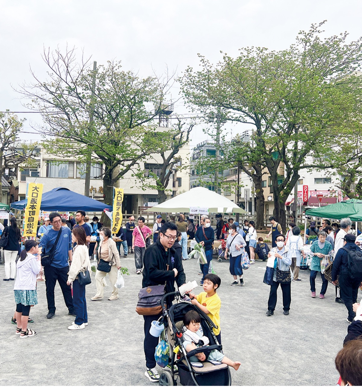 当初は一週間前に開催予定だったが、雨のためこの日に順延。それでも地区内の各町会が飲食などの模擬店を出店した。このほか、フリーマーケットや地域の障害者施設「わーくぴあ」「おおぐち工房」「もくもく」も一緒に出店。三角くじの抽選会も行われた。