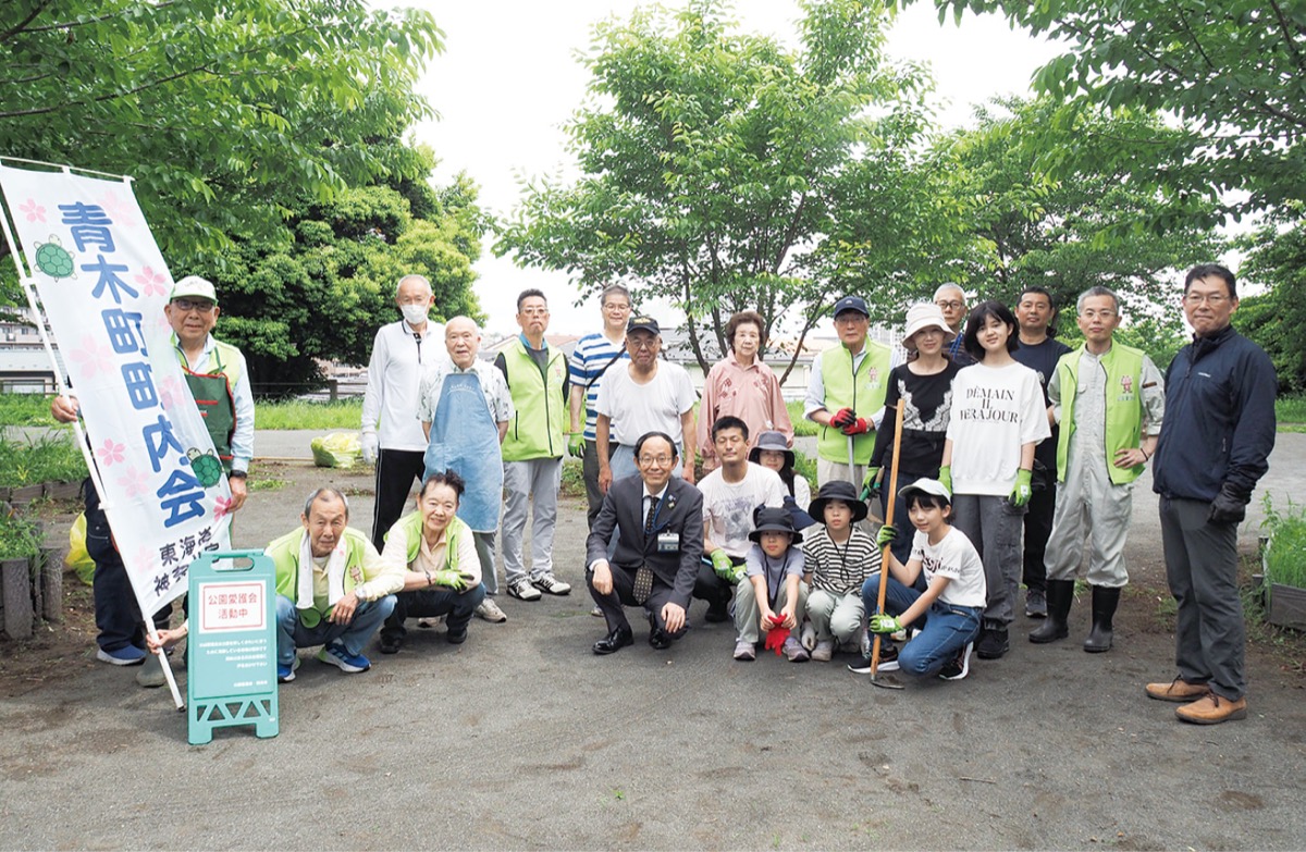 10年以上前から月1回、青木町町内会と連携し、清掃活動を続けています。今回は子どもも含めて約20人が参加し、雑草の草むしりを行いました。雑草は土にしっかりと根を張っており、想像以上に力が必要でした。