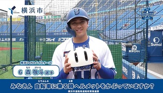 市は夏の交通事故防止運動(7月11日〜20日)に向け、ベイスターズの山本祐大選手と森敬斗選手がそれぞれ、自転車用ヘルメットの着用を呼びかける動画を作成した。ウェブサイトのほか、区役所や駅のデジタルサイネージで放映している。