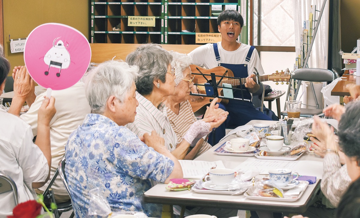 この日のメーンイベントは同町在住のシンガーソングライター、大谷涼輔さん=人物風土記で紹介=による音楽ライブ。大谷さんはギターを手に、昭和歌謡やオリジナル曲「おにぎリズム」や「約束」など9曲を演奏した。