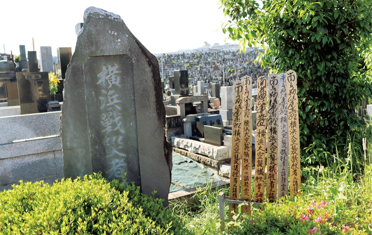 被害の記録や鎮魂を目的に、市内各所に戦災者を弔う追悼施設が戦後建てられた。横浜市による戦没者追悼式が毎年行われる、三ツ沢公園内にある慰霊塔は西南戦争から第二次世界大戦までの戦争犠牲者の御霊を安置するため、1953年3月に建設されたもの。