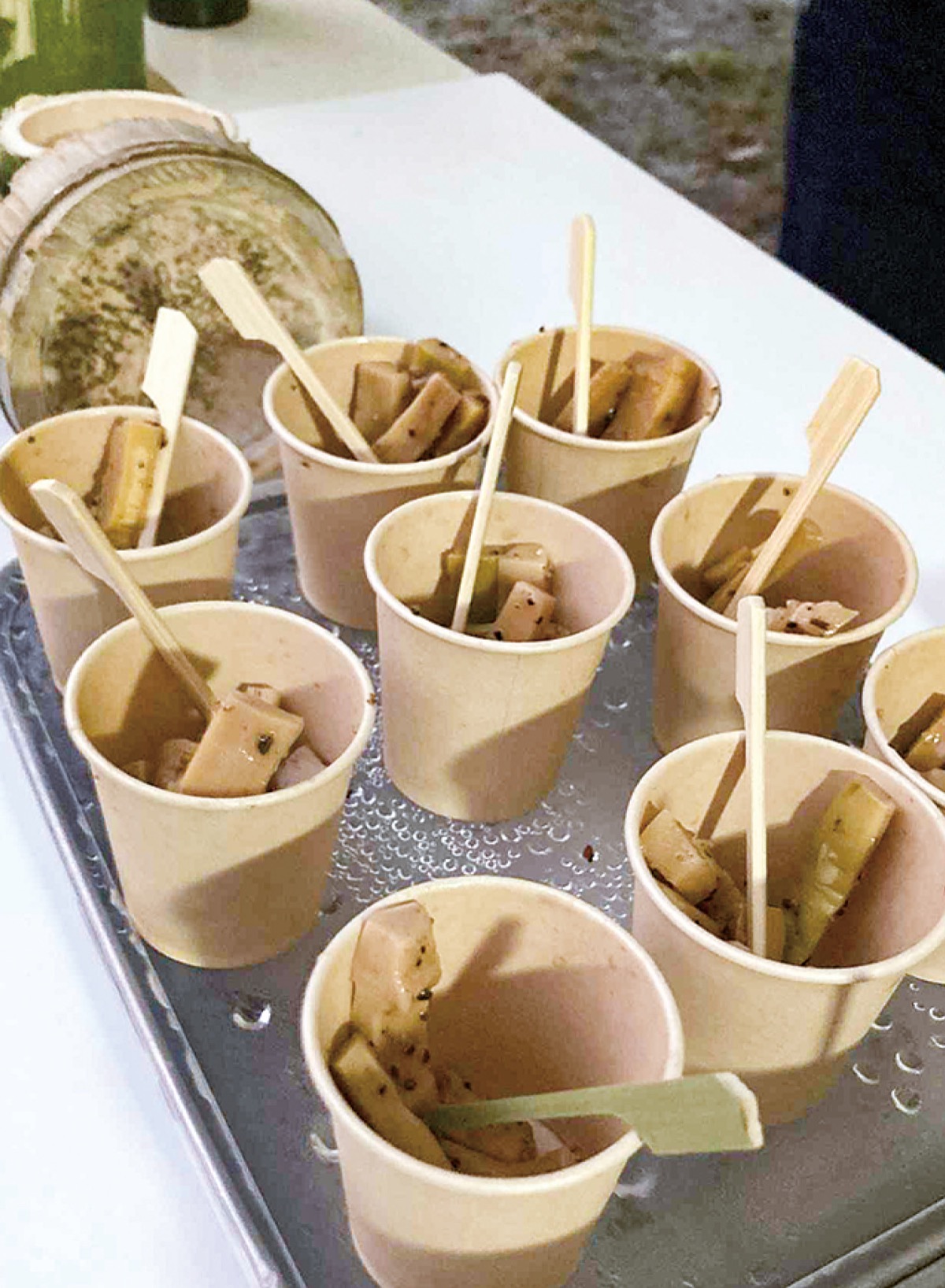 菅田いでど公園の竹林整備の一環で伐採した幼竹を加工したメンマが、8月22日・23日に同所で行われた菅田南町自治会主催の盆踊り大会で販売された。