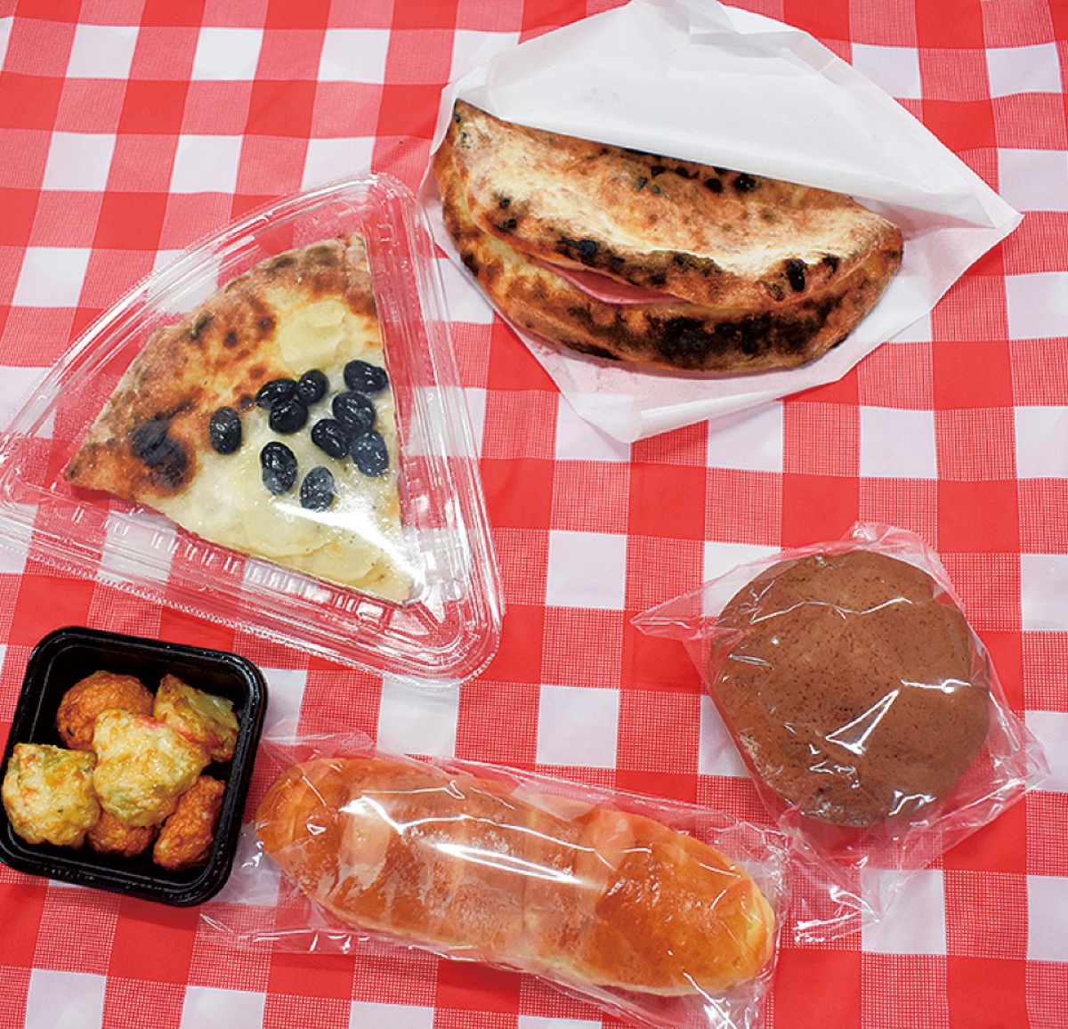 ピザ店の「ボッカグランデ」とは黒豆をトッピングした「黒豆ポテチーピザ」とパニーニ風の「holdingハムチーピザ」、練り物の能登屋とは店頭で限定販売もされた「お好み揚げ」「ピリ辛軟骨ボール」、ベーカリーの日本堂とは人気商品をアレンジした「Wショコらぶ」「和栗コッペ」をそれぞれ開発。ピザメニューの開発にかかわった山本奈穂さん(3年)は「学校外の大人と物事を進めていく工程などを学べたのは良い経験になりました」と話した。