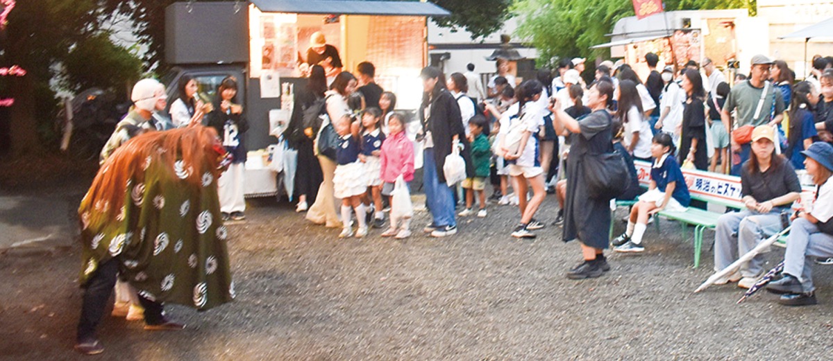 昨年に続き登場したキッチンカーは盛況。今年は神楽鑑賞を予約すると割引券がもらえる試みも行った。同神社宮総代の岡谷博さんは「初日は雨だったが多くの人が来てくれて良かった。新しい試みはこれからも続けていきたい」と話した。