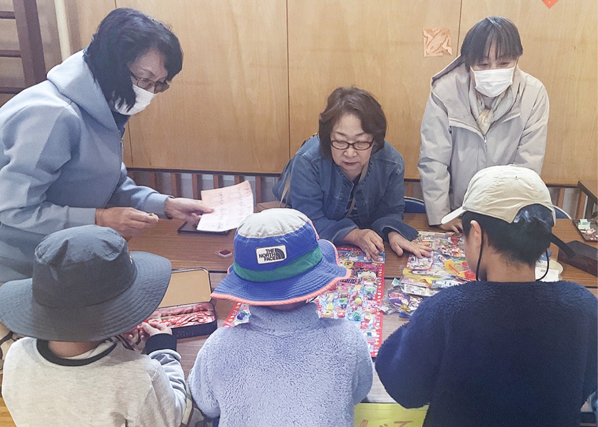 当日は同校体育館に同校6年2組の23人による射的、昔遊び、輪投げなど6つのブースと、民生委員によるおもちゃくじのブースが用意された。