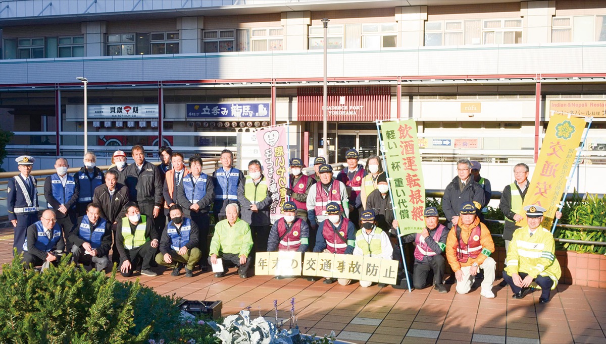 神奈川警察署は12月11日、年末の交通事故防止を呼び掛けるキャンペーンを実施した。神奈川交通安全協会、神奈川交通安全運転管理者会、神奈川地域交通安全活動推進委員、神奈川県自動車整備振興会神奈川支部、警親会、神奈川区役所地域振興課から、約30人が参加。JR・京急東神奈川駅の連絡通路「かなっくウォーク」で、交通ルールが記載されたパンフレットや暗い場所でも目立ちやすい黄色の巾着バッグ、反射板の素材でできた「反射折り鶴」キーホルダーなどが入った啓発グッズのセットが通行人に配られた。