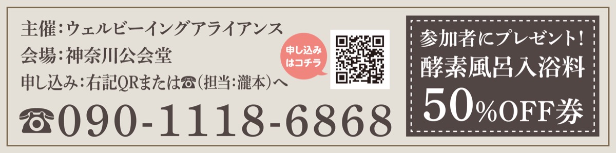 参加者には参加者特典として、人気酵素サロン「ラニオラ」入浴料半額券をプレゼントする。申し込み締め切りは各セミナーの3日前まで。