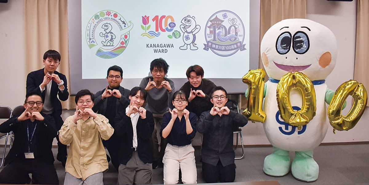 ロゴ案を制作したのは、市と連携協定を結んでいる学校法人岩崎学園情報科学専門学校=鶴屋町=の学生たち。昨年5月頃から浦島太郎伝説で知られる慶運寺やキャベツ畑、横浜市中央卸売市場などをフィールドワークで訪れるなどして神奈川区のことを学習。その上でロゴに込める思いを考え、8つのデザイン案を作成した。