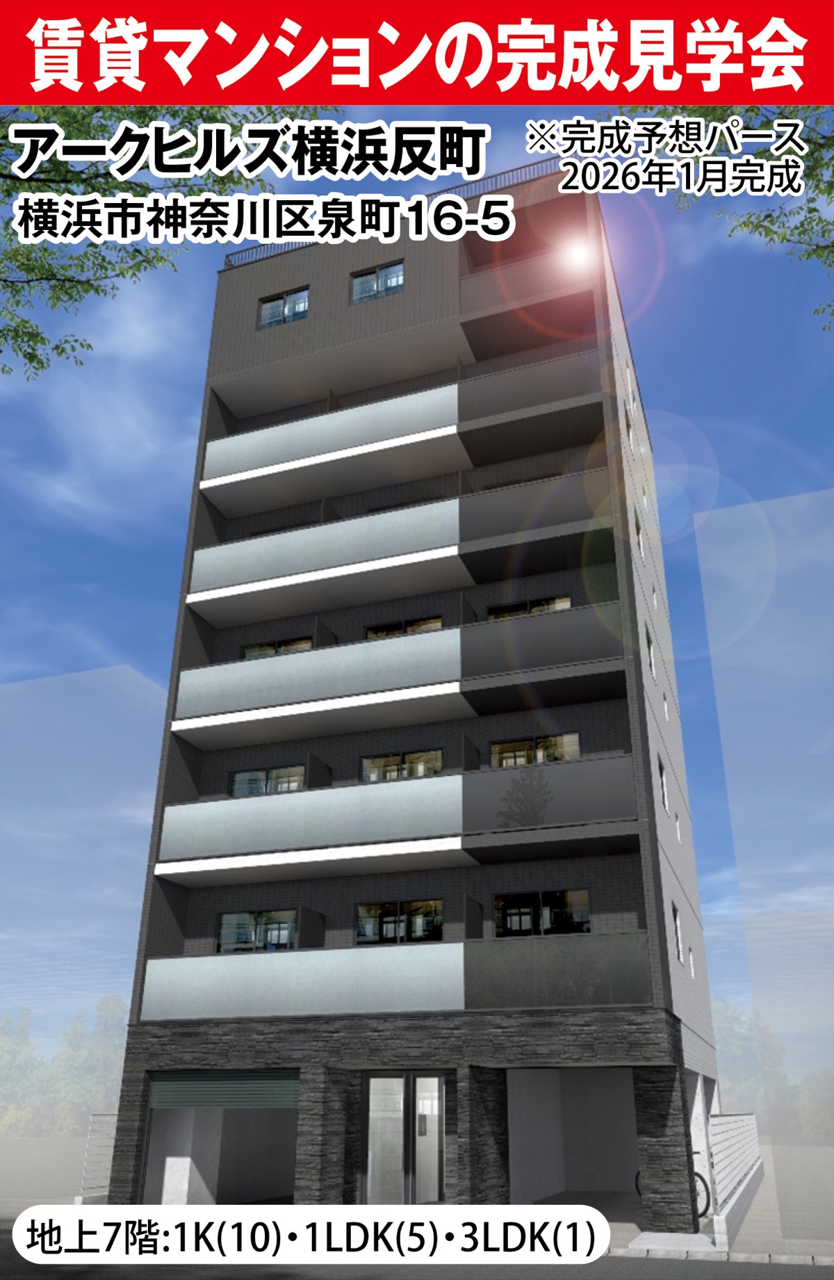 神奈川・東京エリアで741棟1万301戸の建築実績を誇る「朝日建設」(本社・相模原市)は1月17日(土)・18日(日)、いずれも横浜駅南12出口徒歩10分圏内にある、店舗併用賃貸マンション「アークヒルズ横浜泉町」の構造見学会と、賃貸マンション「アークヒルズ横浜反町」の完成見学会を同時開催する。150m(徒歩約2分)の距離にある2棟を合わせて見学することができる。午前10時から午後4時まで。