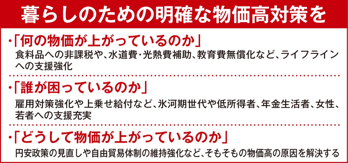 高市政権が進めようとしている一部の富裕層や大企業だけが潤うこれまでの政策を見直し、私たちの暮らしを立て直すことが必要です。