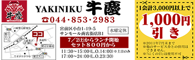 鷺沼駅徒歩1分の焼肉店「牛慶(うしよし)」が今春オープンした。