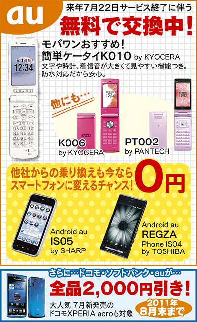 auが利用している800メガヘルツ帯周波数の切り替えに伴い、au携帯「CDMA 1X」が来年7月22日で使えなくなることをご存知だろうか。