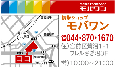 鷺沼駅前の携帯ショップ「モバワン」(フレルさぎ沼3F)では現在、携帯を無料で交換するサービスを行っている。交換できるのは、防水機能搭載のでか文字携帯「WIN簡単ケータイ」ほか3商品。