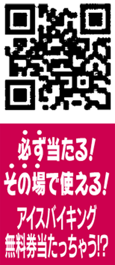 QRコード登録で、その場で使えるアイスバイキング半額券または無料券が当たっちゃう!さらに食事後にアンケートに答えると、トッピング無料券や割引券が当たるかも。