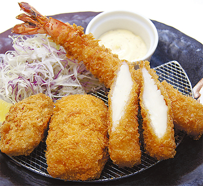お客様から「今年はまだなの?」と催促の声が挙がるほど昨年大好評だった「カキ」メニューがバージョンアップして復活!定番の人気メニュー「カキフライ」や、カキ・カニクリームコロッケ・イカ・エビのボリューム満点「シーフードミックス」など、お肉が苦手な方にもオススメ!さらに「タウンニュース見た!」で当店自慢の「レディースロースかつ」が999円と大サービス(10月31日まで)。また同店では、「その日のオススメを低価格で味わってもらいたい」との想いから「日替わりランチメニュー」も980円(税込)で登場(平日限定)。