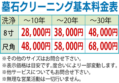 同店は技術・接客とも厳しい研修を受けてきたスタッフばかり。そのため細かい気遣いはもちろんのこと、汚れの原因や度合いに合わせた洗浄技術で、お墓をキレイにしてくれる。作業も高圧洗浄機等は使用せず、全て手作業で行うため墓石を傷める心配もない。
