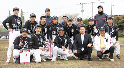 大会は8日に持田会長の始球式で開幕。1部と2部合わせて12チーム、約200人の選手が参加し、日頃の練習の成果を発揮し、熱戦を繰り広げた。