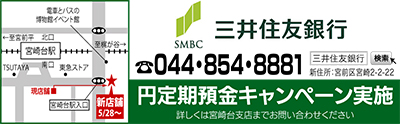 宮崎台駅前で長年に渡って地域の人々から愛されてきた三井住友銀行宮崎台支店が5月28日(月)、新店舗に移転する。