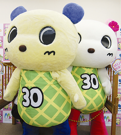 区誕生30周年を機に誕生したメロー、コスミンの『宮前兄妹』になれる着ぐるみ体験講座の受付が23日午後1時から始まる。