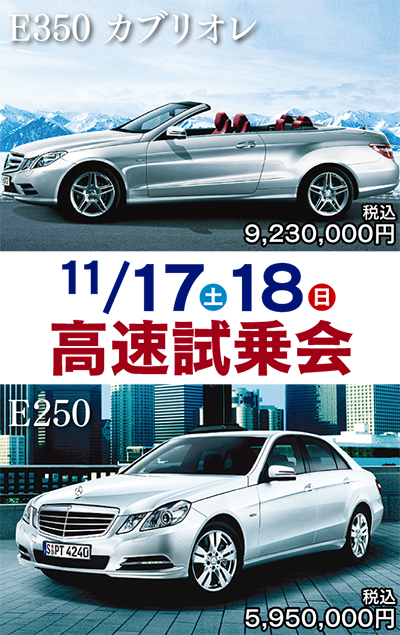 メルセデス・ベンツ正規販売店「ヤナセ東名川崎支店」では11月17日(土)・18日(日)、Eクラスの高速試乗会を開催する。