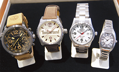 店内には時計や時計ベルト、宝飾品などが計千点以上並ぶ。中でも注目を集めているのが腕時計の「特別ご奉仕品コーナー」だ。洗練されたデザインで幅広い年齢層に好評のスイス発祥ブランド「オレオール」を含む5ブランドを10500円にて展開。通常3万円から4万円で販売されているブランドだが「もっと気軽に時計を楽しんでほしい」との思いから始まった。