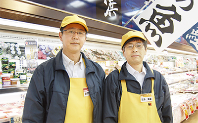 店内には肉、野菜、魚、惣菜など毎日の食卓に欠かせない食材が常時約2000品目以上並ぶ。鮮魚はその場で無料でさばいてくれるなど、嬉しいサービスも。「新鮮でおいしい食材をどこよりも安く、早くお客様に届けたい。そのための努力は惜しみません」と同店の石井幸雄店長。独自の物流ルートによって、食材を新鮮なまま消費者の手に届けることができるという。「お客様に最短ルートで食材を届けられるのが店の強み」とも。
