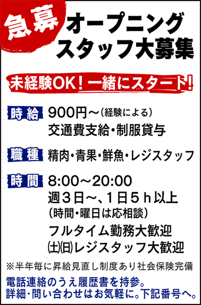 さらに同店では購入した商品を、その日のうちに自宅に届けてくれる宅配サービスも行っている。購入金額1800円以上で送料は無料に。「たくさん買ってしまって持ちきれない」「買い物の後に子供のお迎えがある」など、手ぶらで帰りたいときには嬉しいサービスだ。配送エリアは同店周辺。受付は開店から午後16時30分まで。アイス、冷凍食品は配達不可。詳細・問い合わせは同店へ。