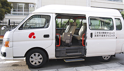 近年、透析患者の高齢化が進むなかで、同クリニックでは通院のサポートとして、無料送迎を行っている。車いすでも乗車ができる送迎車を準備しており、患者さんからも「家の玄関から送迎をしてくれているので本当に助かっています」との声も。
